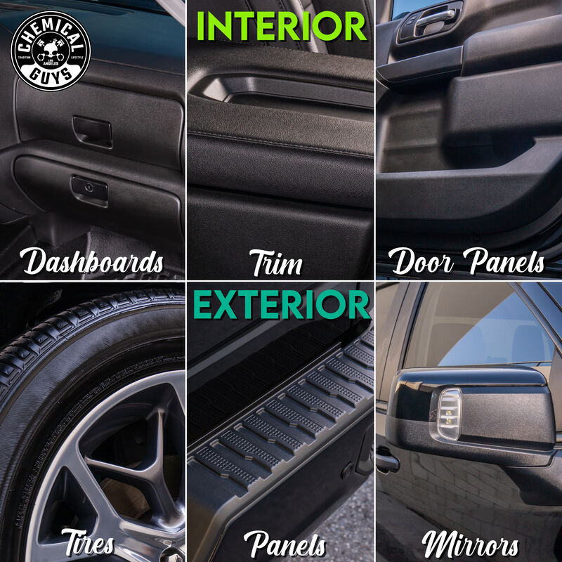 Ceramic SiO2 technology provides the ultimate in protection and shine, and you can get all the benefits of ceramic for your tires, trim, and more! HydroShield delivers a deep, dark new-look finish and provides a strong, long-lasting restoration effect to your vinyl, rubber, and plastic on both your interior and exterior. HydroShield preserves the long-lasting, supreme effect of color saturation, which means a dark, deep, new-look finish on tires, black exterior plastics, trim and more for up to 12 months.