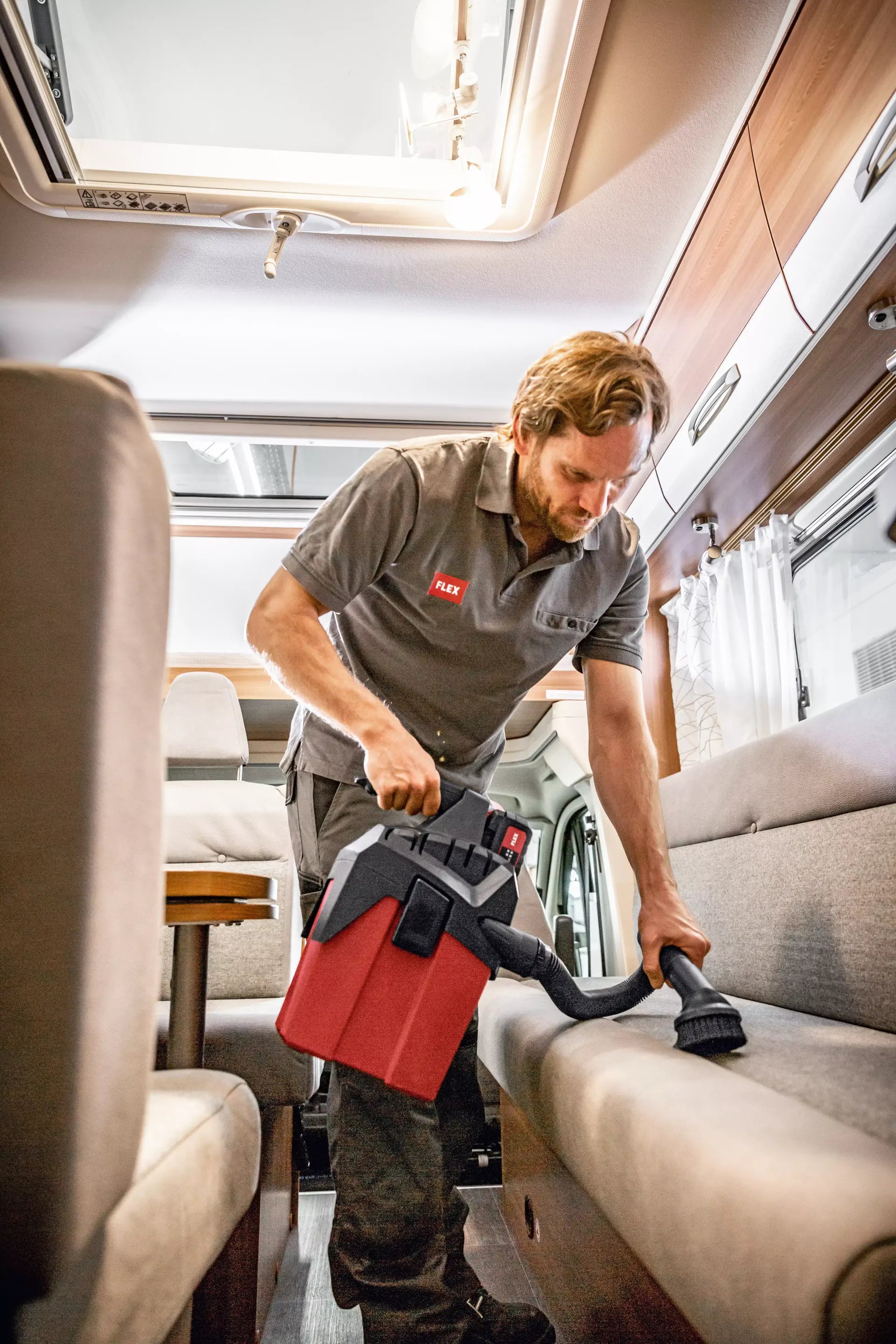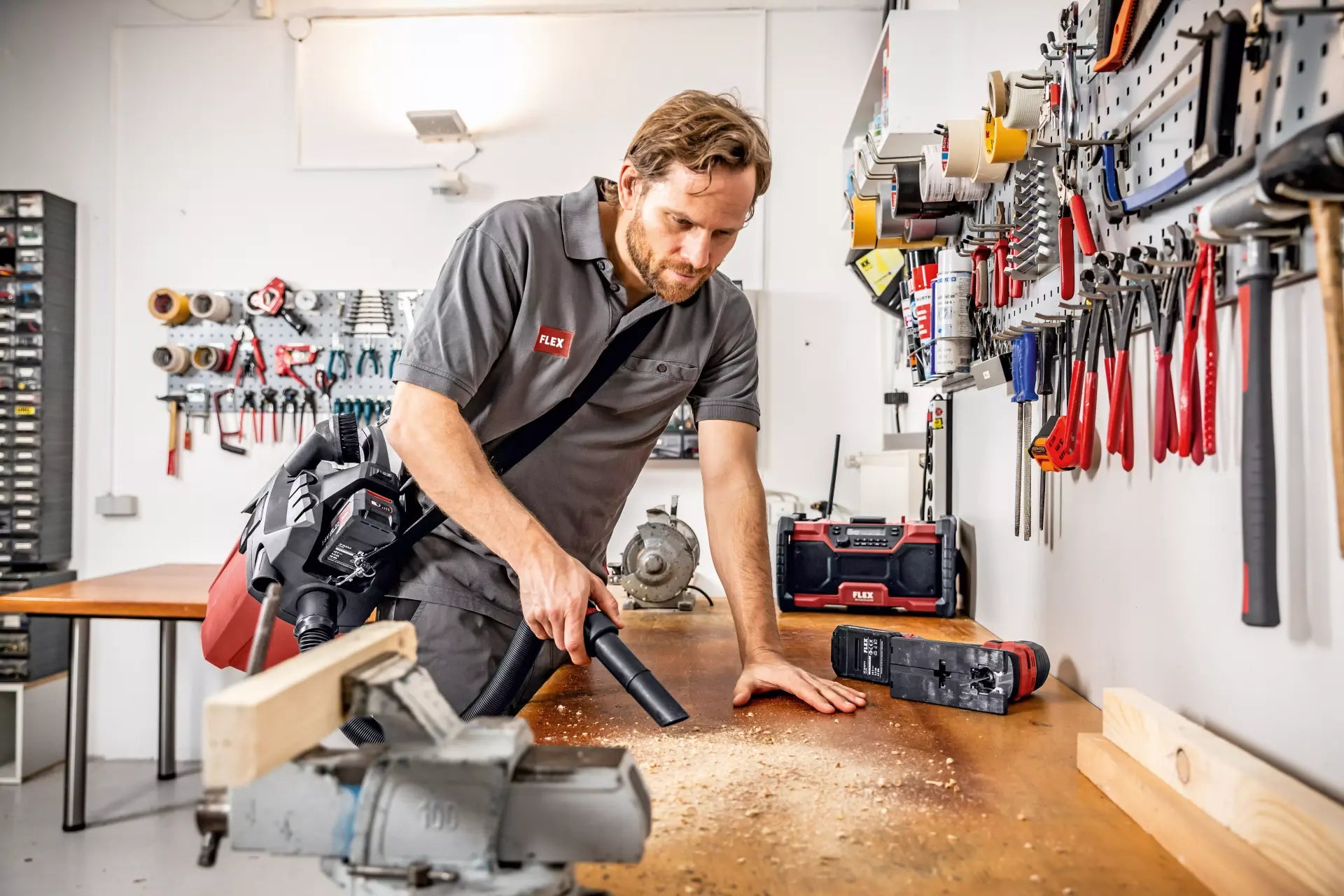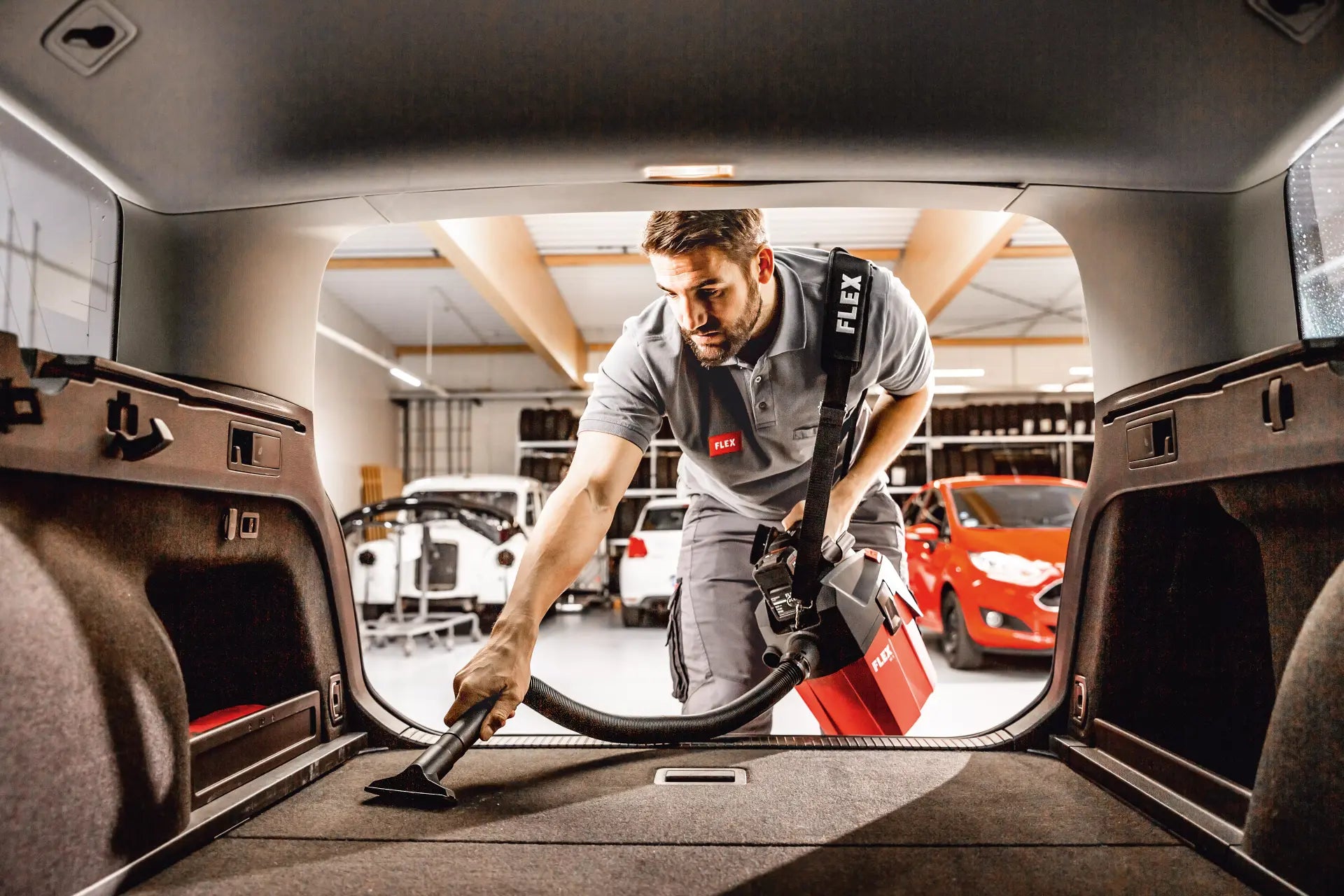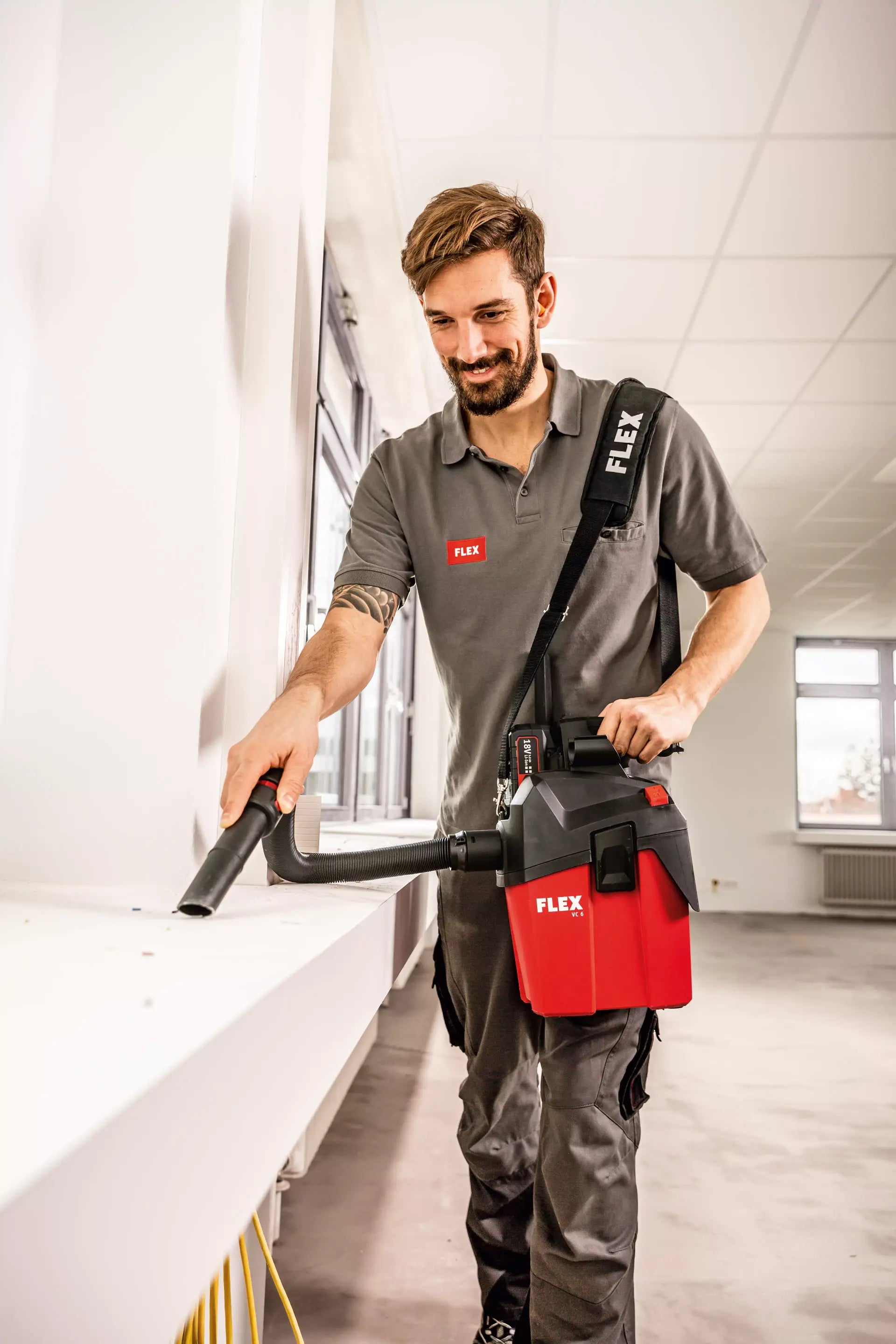 Easy-to-fit running gear available as an accessory. Powerful vacuum cleaner for professional use in final assembly, automotive cleaning etc. FLEX power tools can be connected with ease using the FLEX clip system for extraction work
