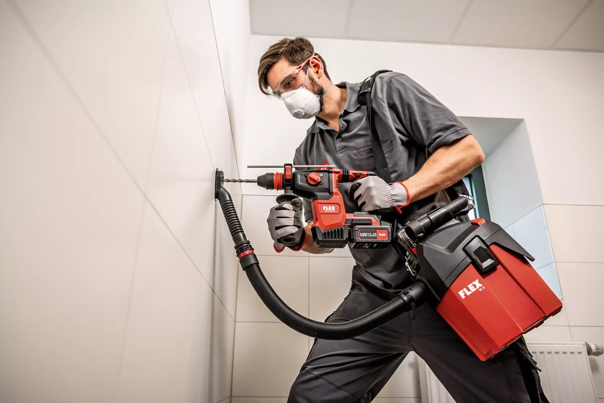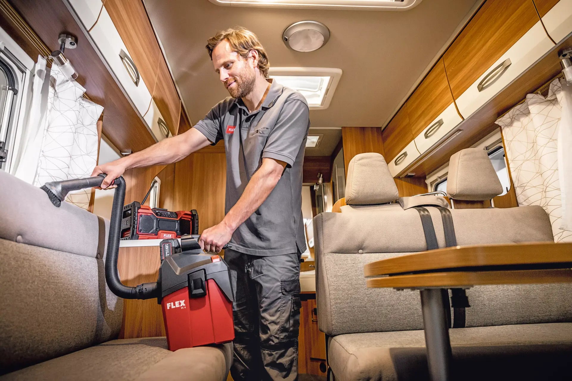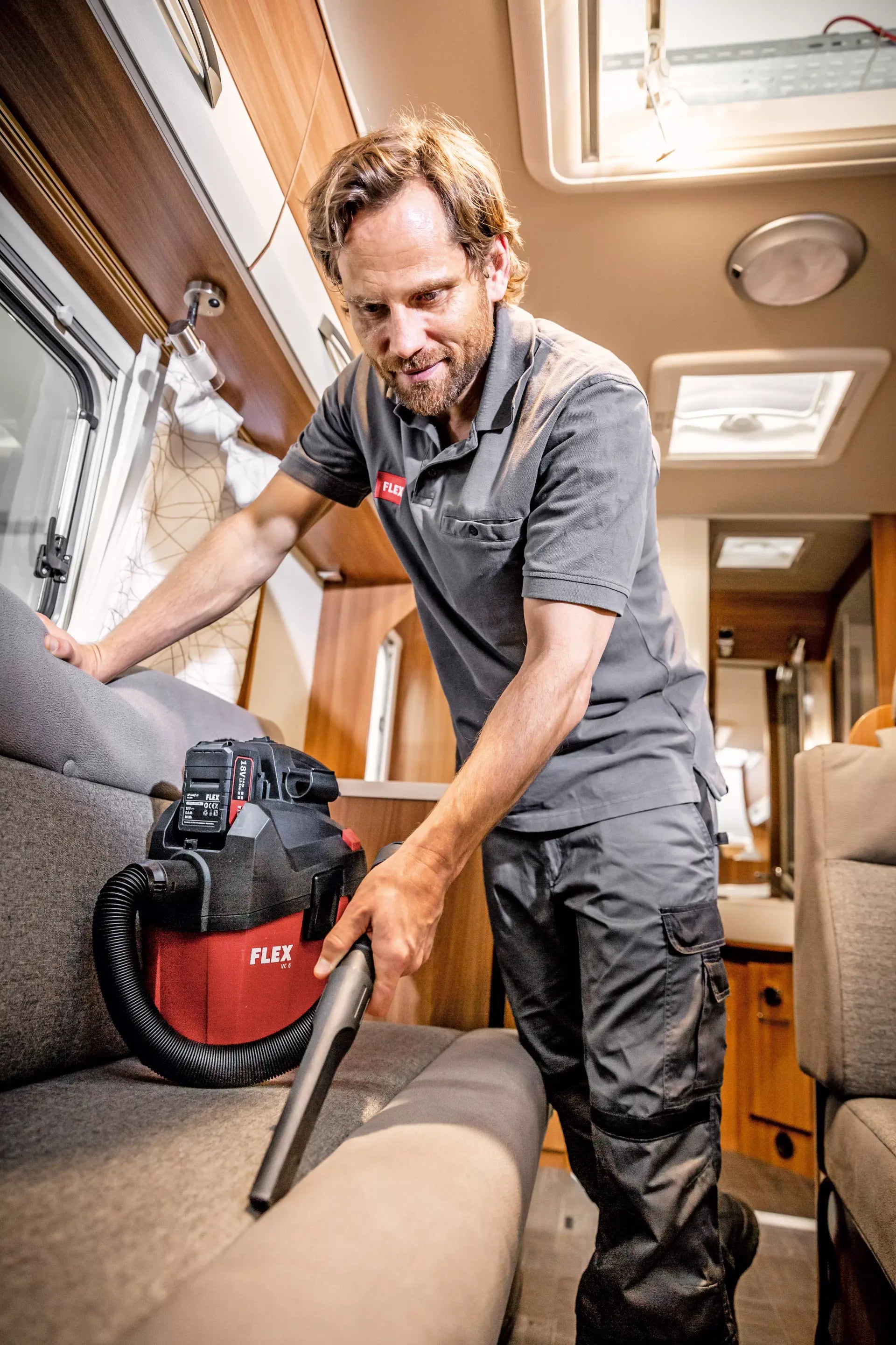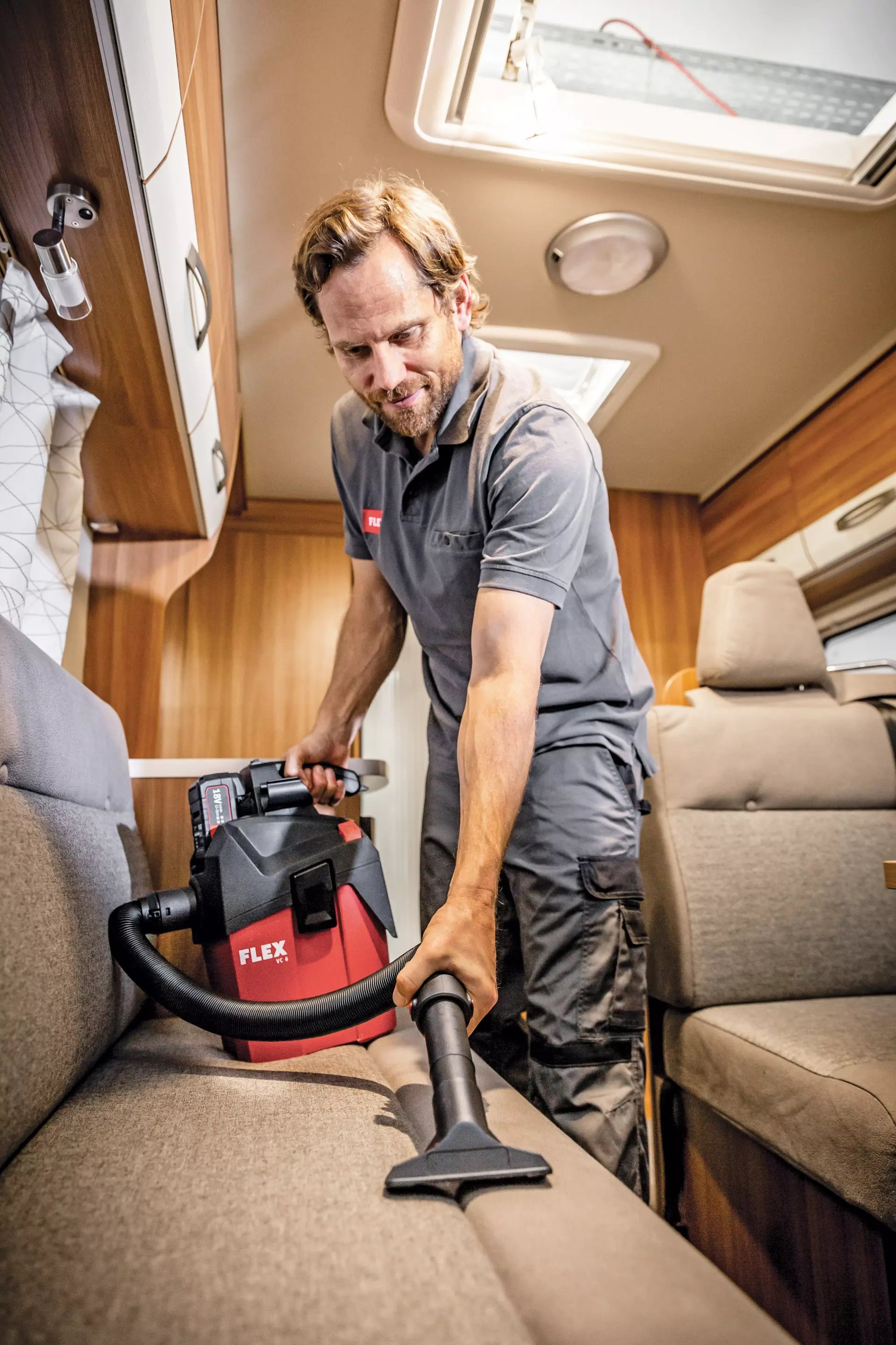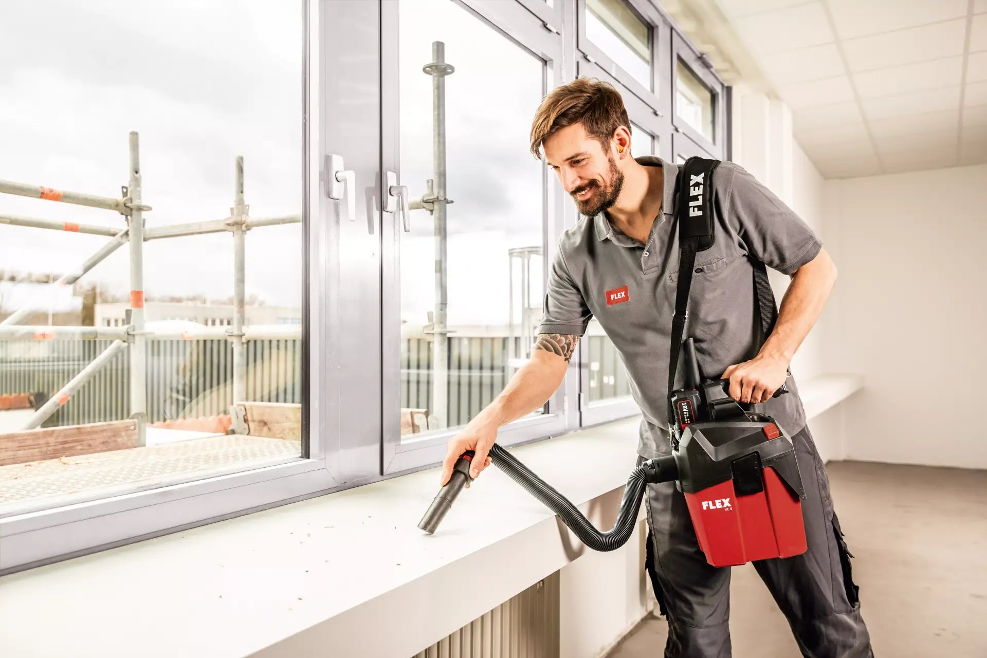 Easy-to-fit running gear available as an accessory. Powerful vacuum cleaner for professional use in final assembly, automotive cleaning etc. FLEX power tools can be connected with ease using the FLEX clip system for extraction work
