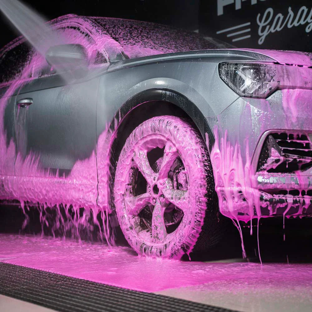 - Coloured active foam: it creates a thick, coloured foam that covers the entire vehicle and durably adheres. Moreover, the colour makes rinsing easier since the foam residue that needs to be removed is easy to see;