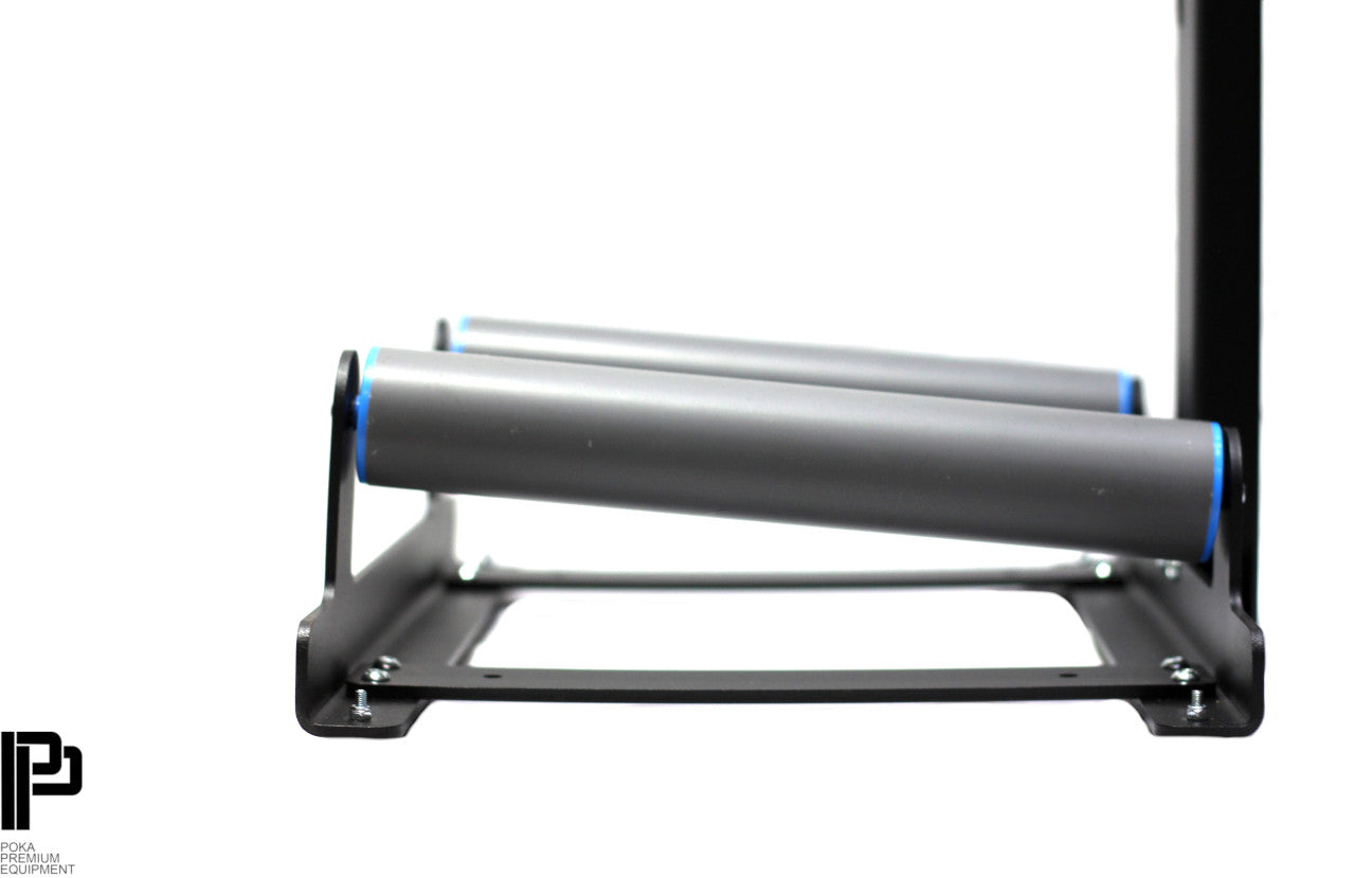 The stand is made of high-quality, durable 4mm black steel, precisely cut and bent, finally coated with a powder finish, both inside and outside, to provide an additional protective layer against oxidation. Bottom rollers with a length of 300m and a top with a length of 400mm (total length of the bail is 900mm) will match the rims in size from 14″ to 22″. High-quality rubber feet keep the stand in one position during all work. Thanks to the special rear bends, the bail is very stable even with massive wheels.