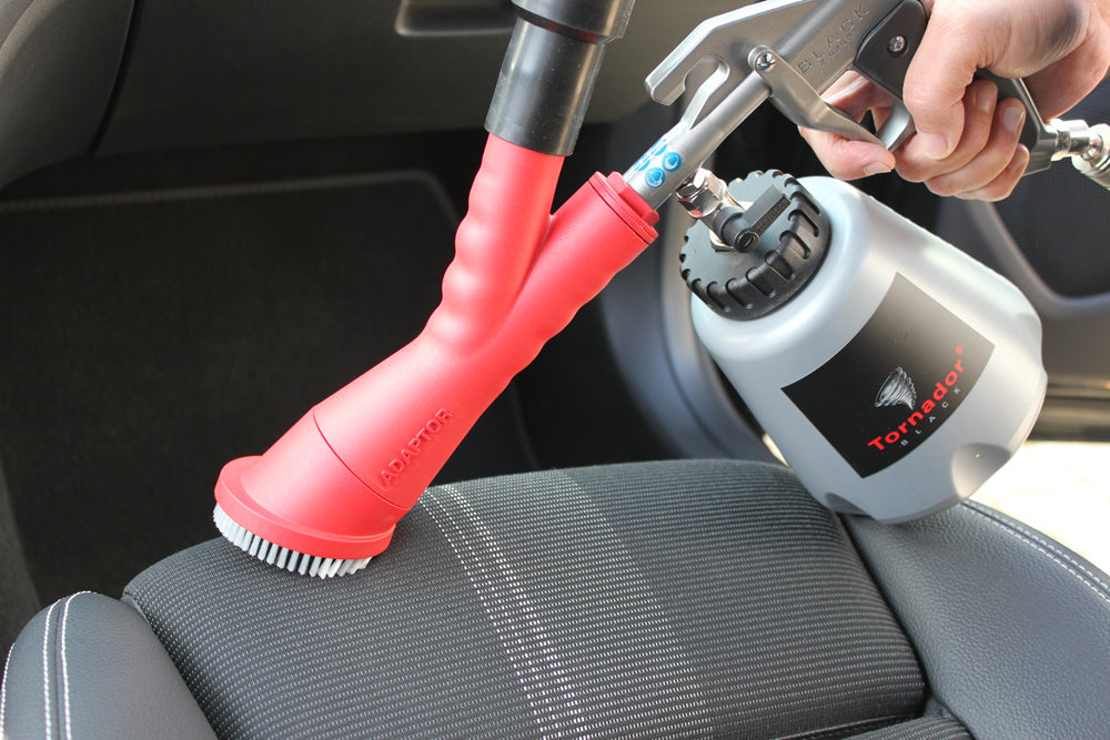 The Rotador ADAPTOR is the long awaited attachment that connects the impulse cleaning guns to the wet and dry vacuum cleaners . Quick and easy to assemble, it combines the power of the rotary tiller with (or without) cleaning fluid and the suction of your vacuum cleaner. The Rotador® ADAPTOR can be rotated through 270 ° and easily adapts to the different working angles. This facilitates handling even in hard-to-reach working areas, making the Rotador® ADAPTOR even more of an indispensable professional device in vehicle cleaning.