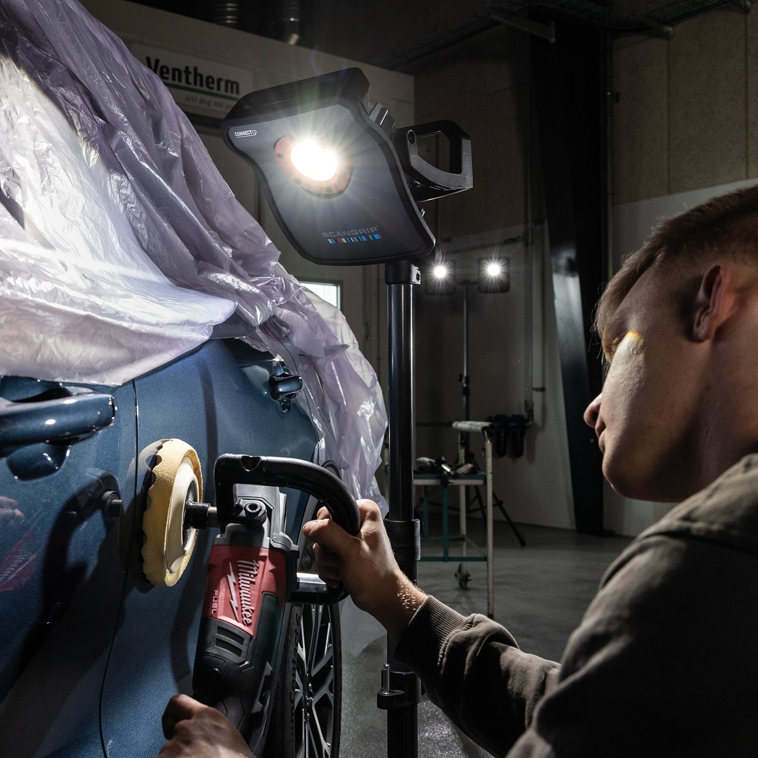The powerful MULTIMATCH 3 CONNECT work light provides up to 3000 lumen and made for inspecting large surfaces during polishing, painting, cleaning operations, and colour matching.
