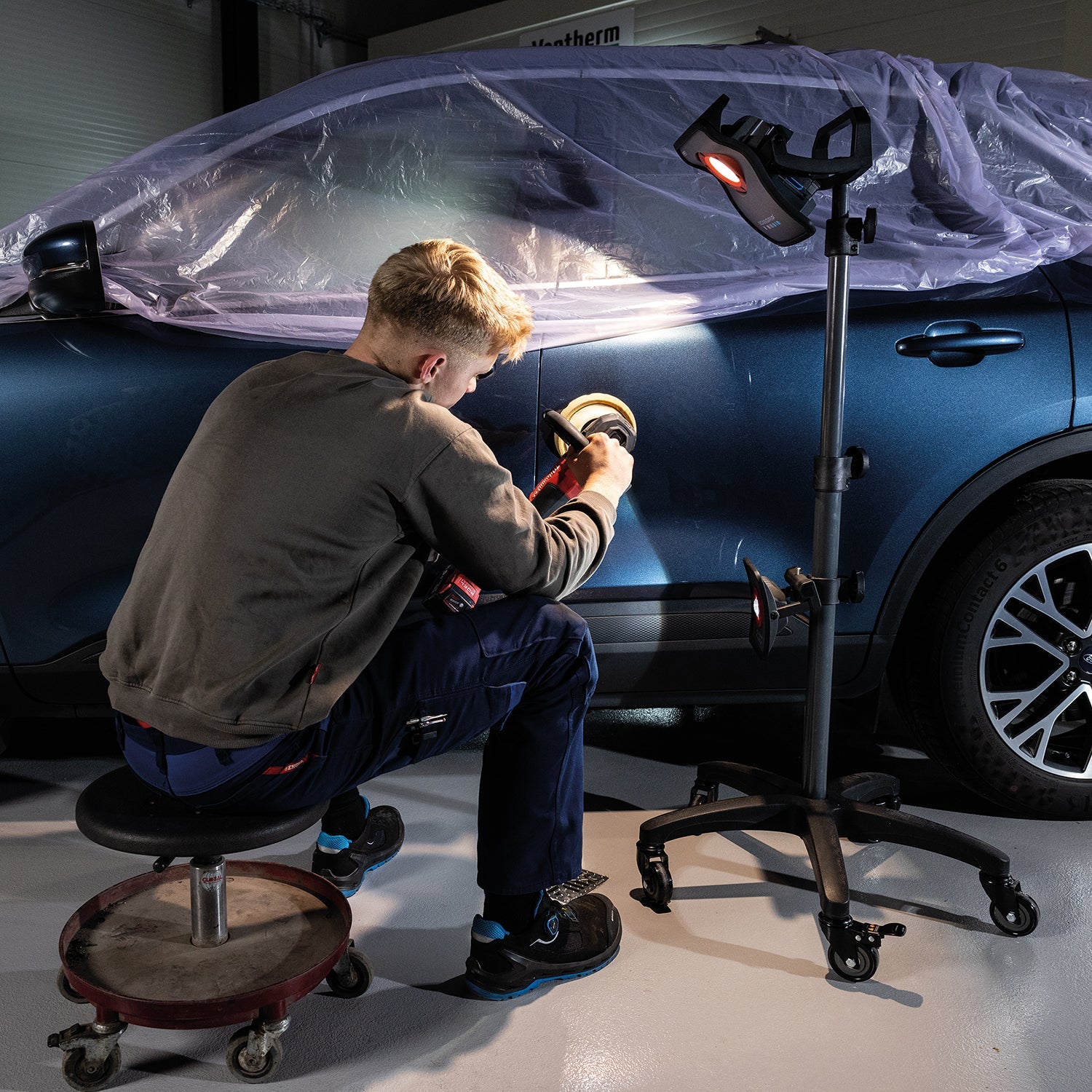 • Powerful rechargeable LED work light providing up to 3000 lumen designed for detailing and colour match