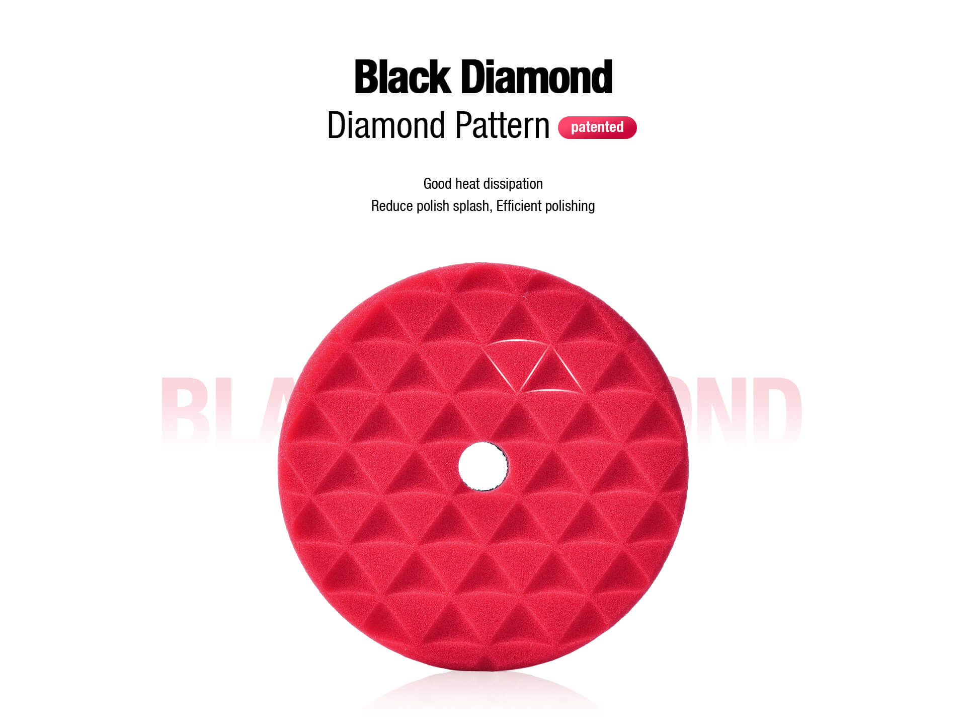 Soft density open cell professional grade foam ideal for light defect removal on soft paints as well as finishing down to a high gloss on all paint types. Designed for both Rotary and Dual Action applications The Black Diamond technology reduces heat generation due to a lower surface area on the panel, it is also more balanced than traditional pad designs and reduces vibration, leading to a user friendly safe polishing experience that produces consistent professional results. Extremely durable and easy to maintain, these pads are suited to a range of compound technologies be they SMAT, Nano or DAT, including but not limited to Menzerna SF3800.
